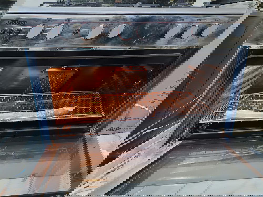بوتجاز يونيون اير چوستو إستالس بالكامل حوامل ظهر مقاس 90*60 غرف مروحه لتوزيع الحرارة إشعال ذاتي شواية متحركة لمبة لإضاءة الفرن خاصية إيزي كلين لتنظيف زجاج الفرن فرز تاني بالكرتونة خبطه من الجمب بضمان 6 شهور من المعرض مكتوب في الفاتورة السعر 8800 + مصاريف الشحن